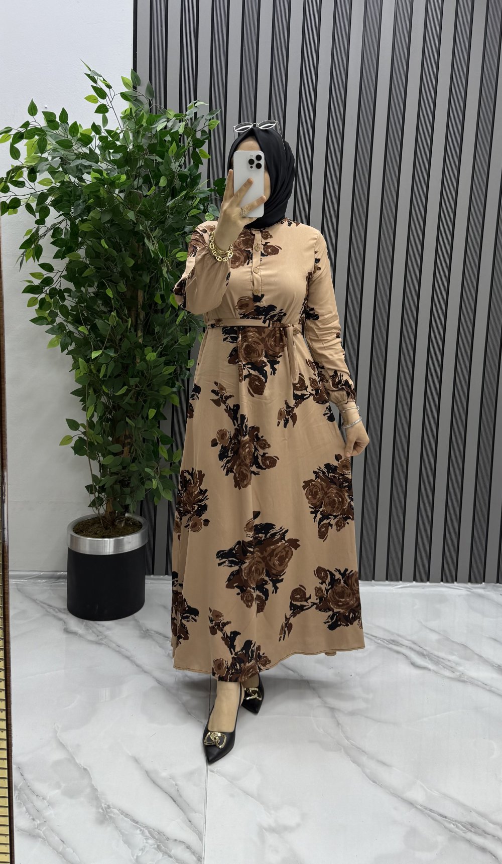 Aksa elbise Bej