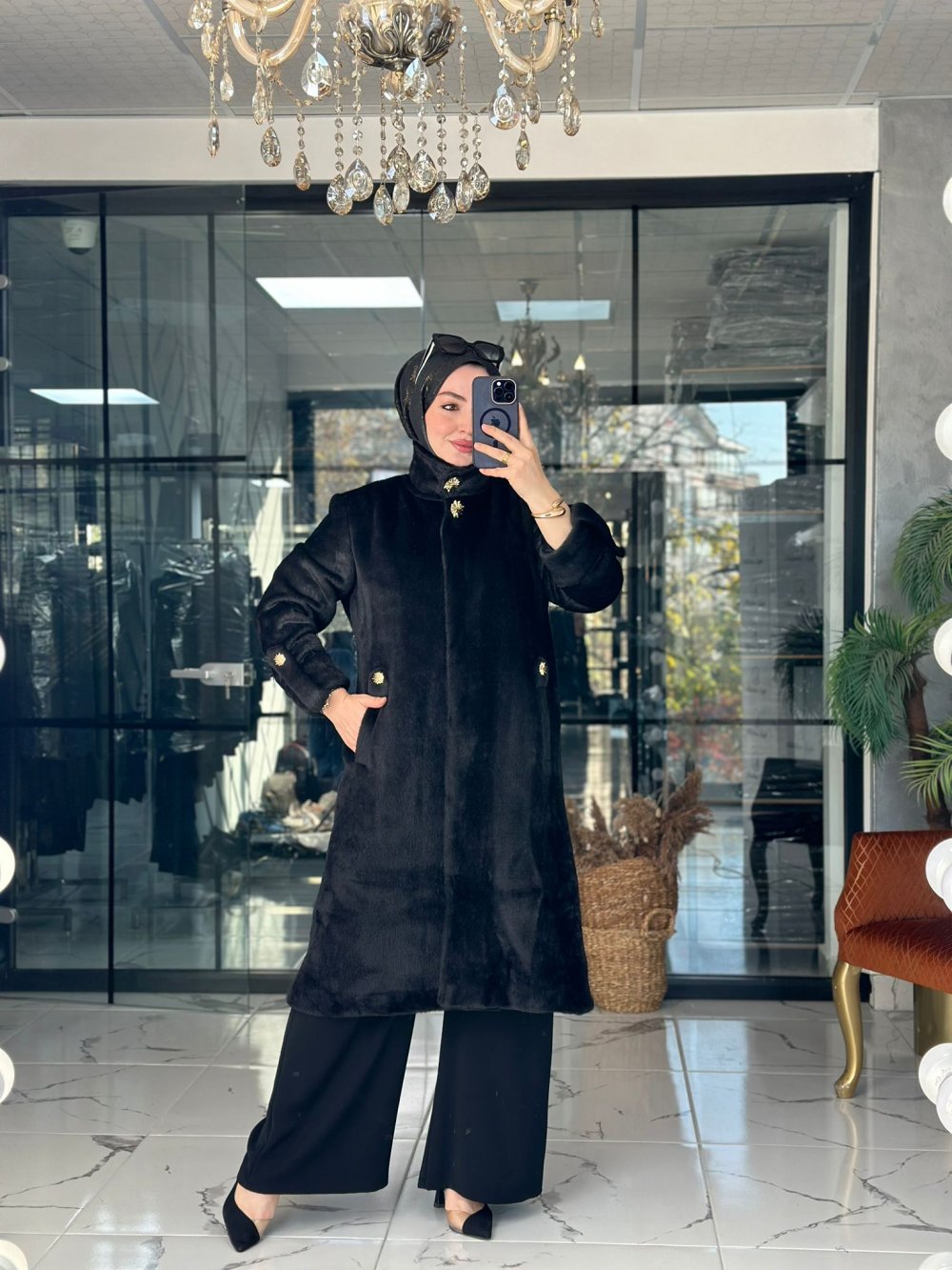 Kumaşı angora kumaştır. Önü gizli kapaklı düğmelidir.