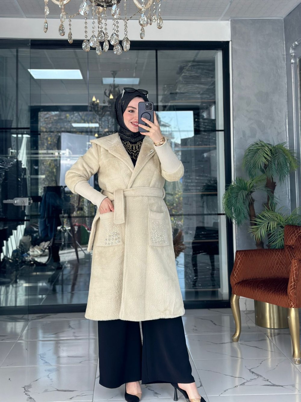 Angora Taşlı Kaban Bej