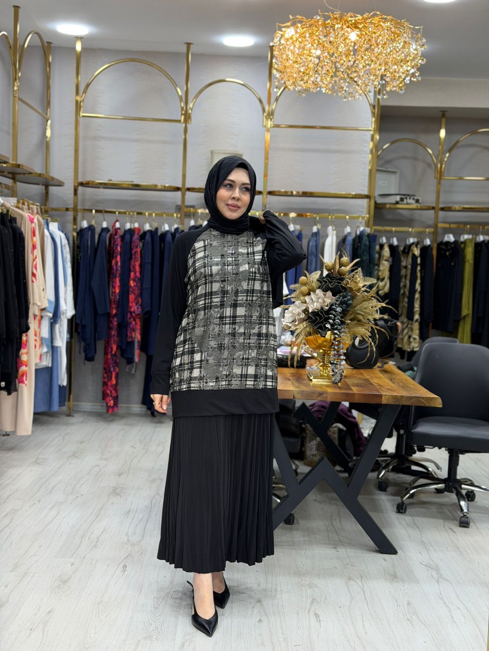 Tunik kumaşı örme, etek kumaşı sandydir. Etek beli lastiklidir.