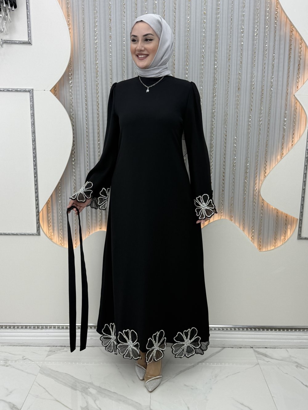 Çiçek Abiye Siyah