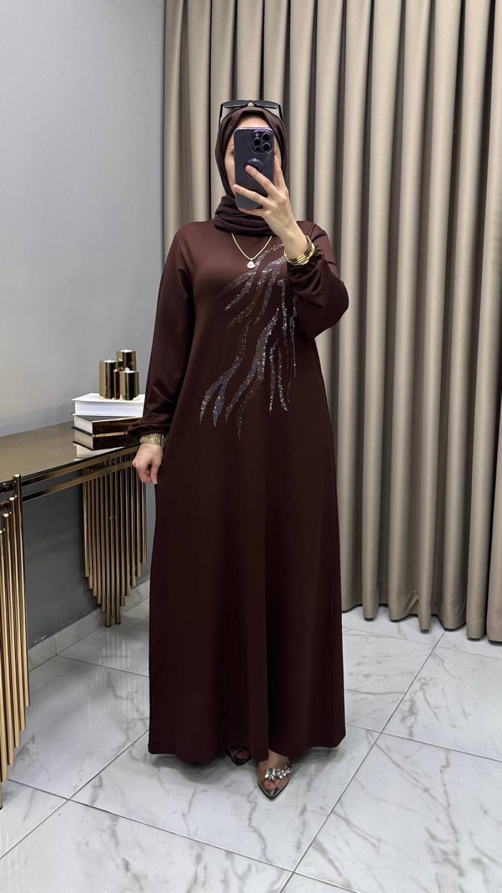 Damla Abiye Elbise Kahve