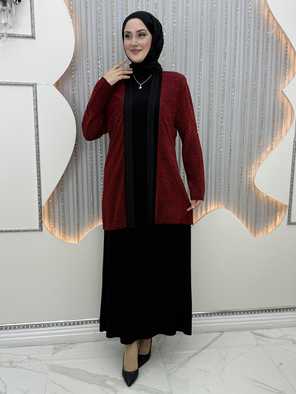 Hırka yaka güpür detaylı