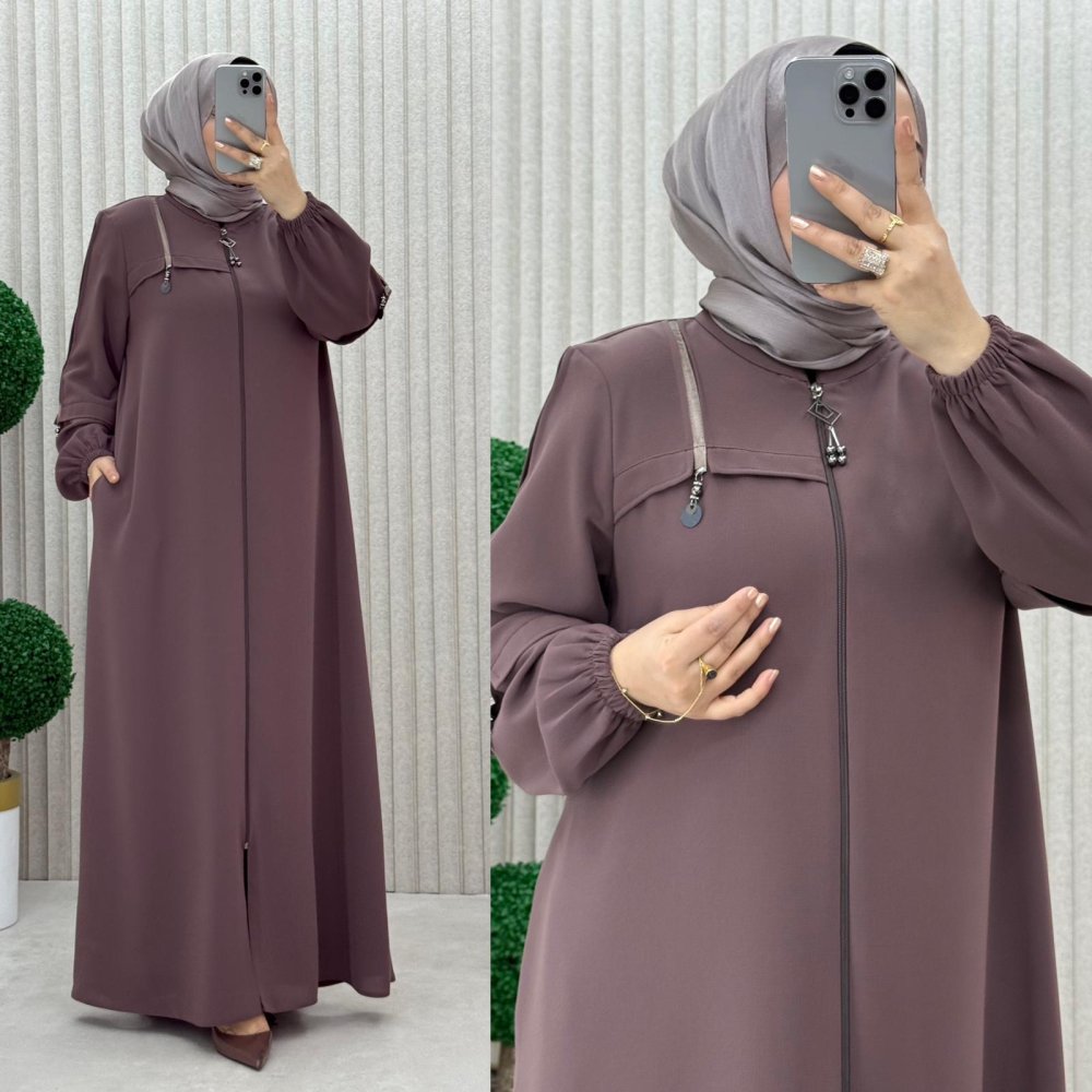 •Şerit detaylı ferace