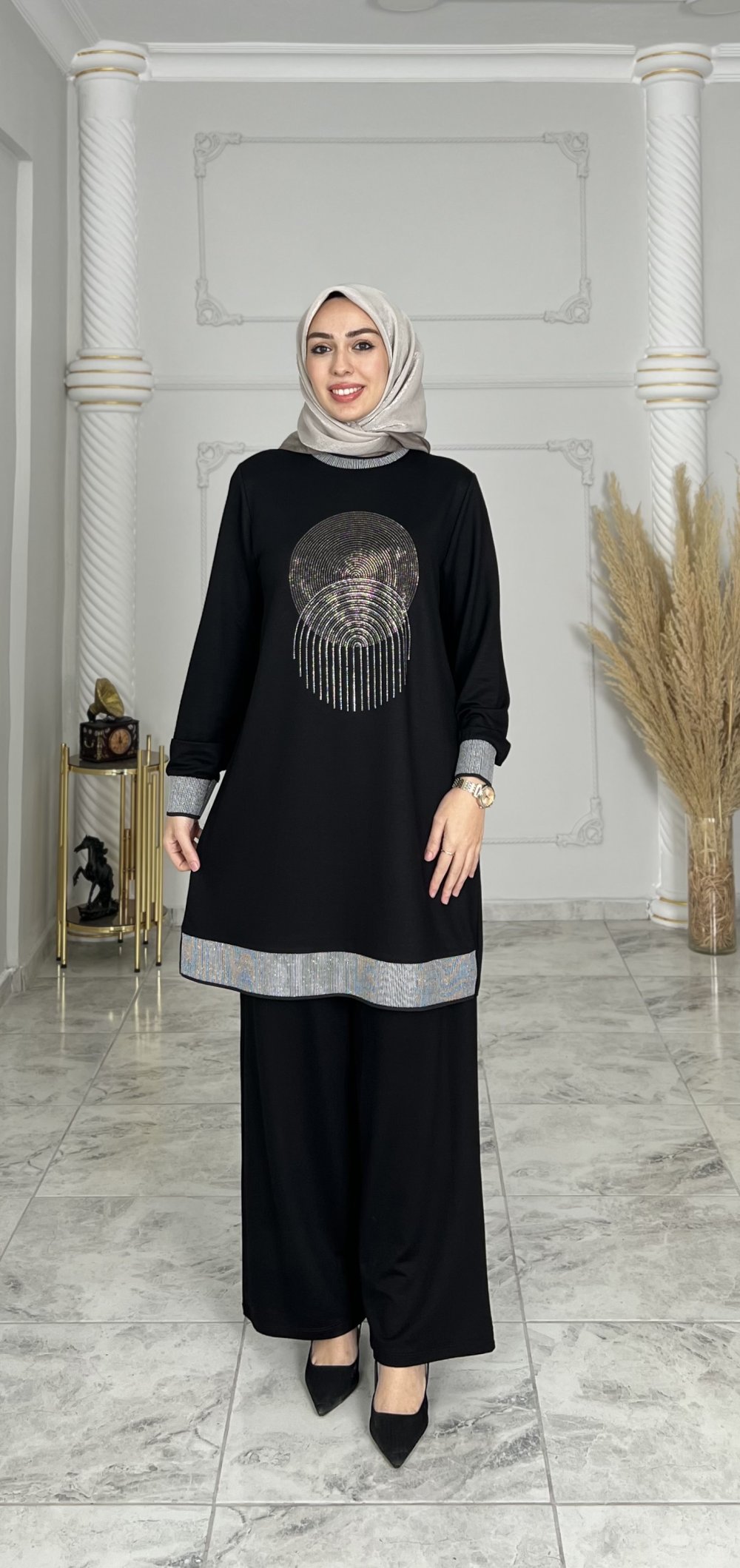 Takım kol ucu ve etek kısmı Ribanalıdır.