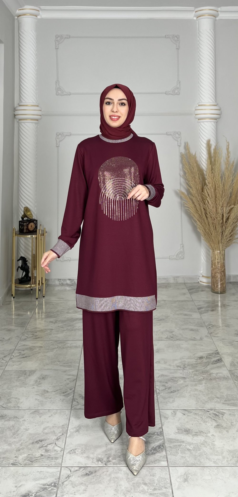 Takım kol ucu ve etek kısmı Ribanalıdır.