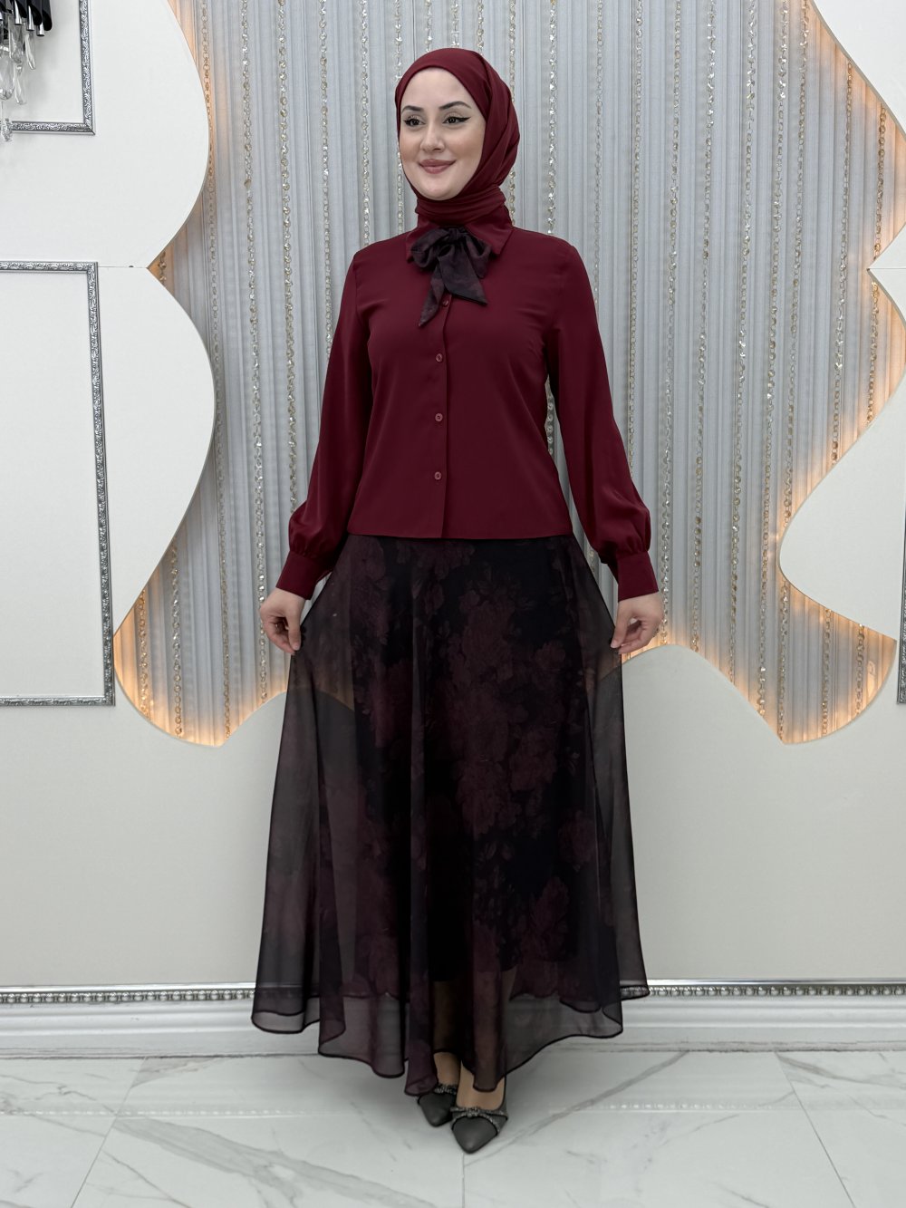 Gülnaz Etekli Takım Bordo