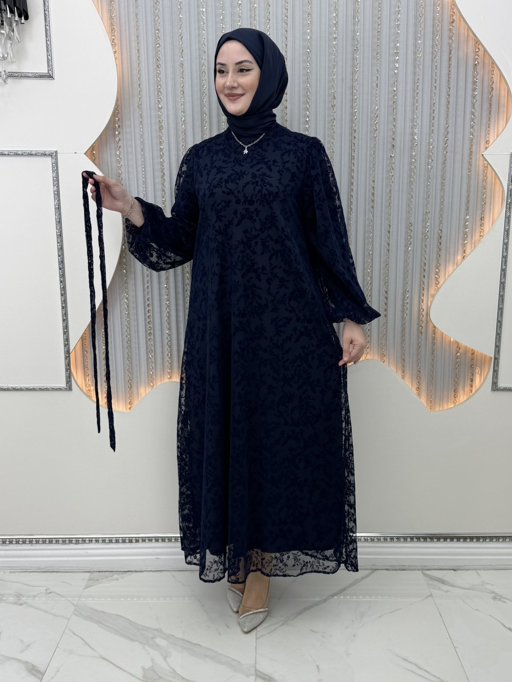 Güpür Elbise Lacivert