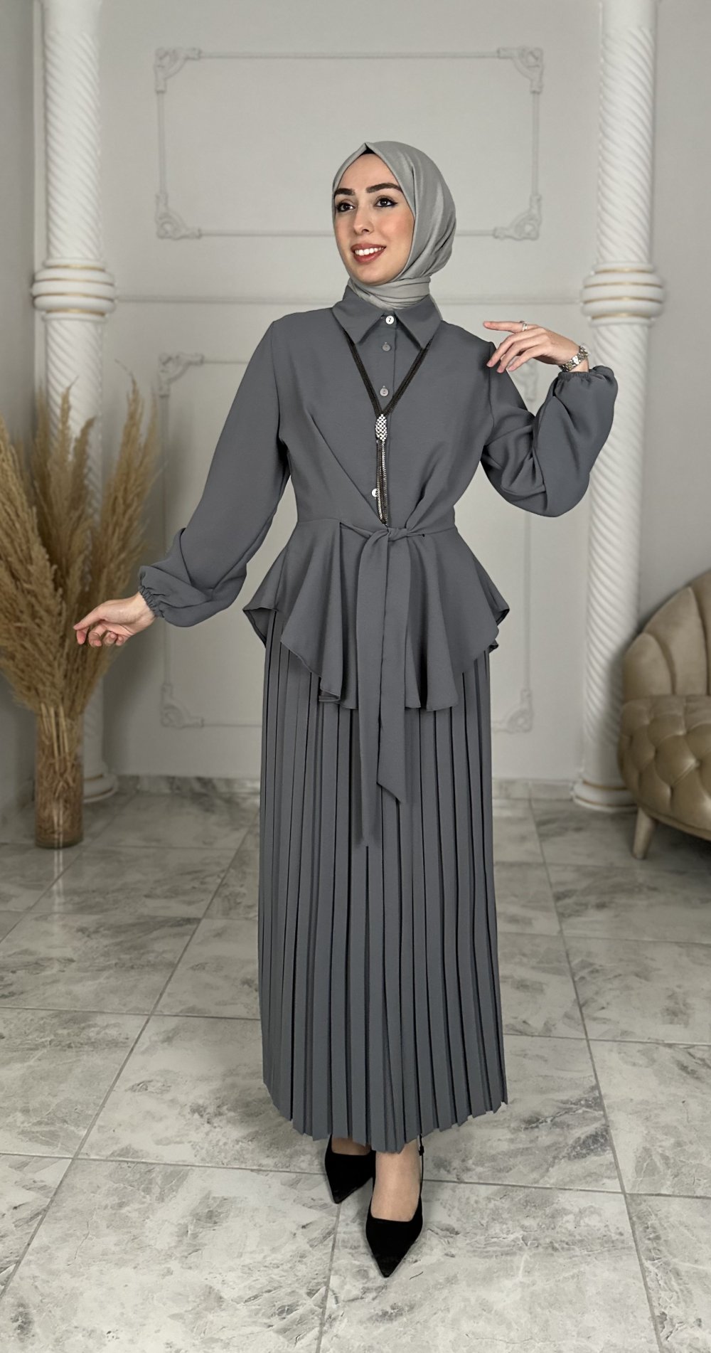 Kumlu krep Abiye kumaşından Üretilmiştir