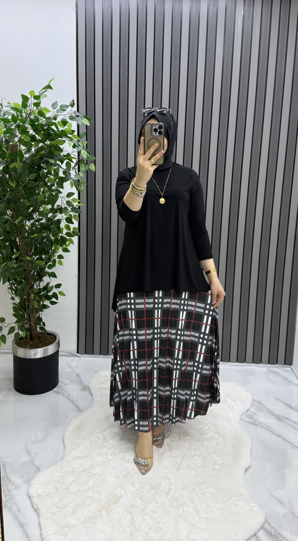 Tunik ön boy 75 cm, arka boy 85 cm’dir.