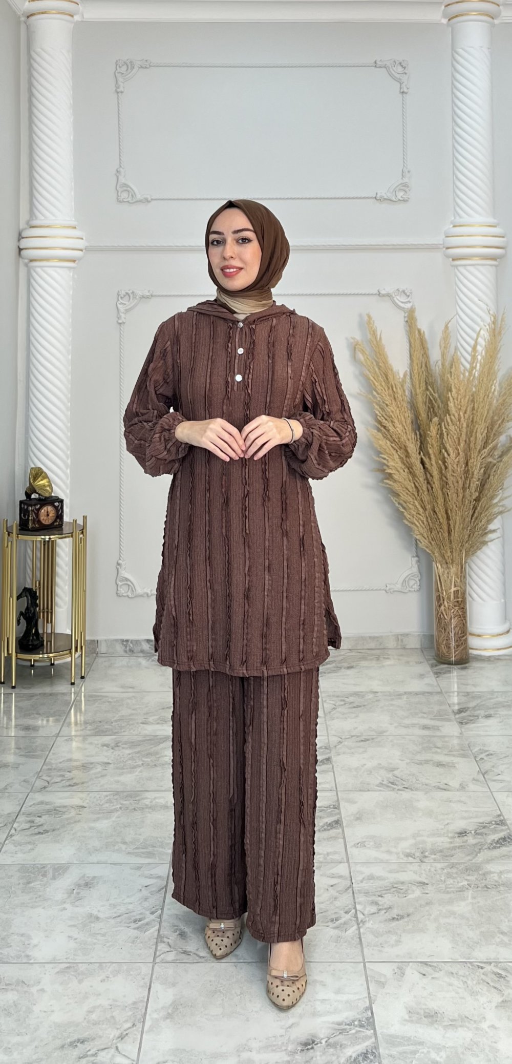 Tunik düğmeli Kapşonlu
