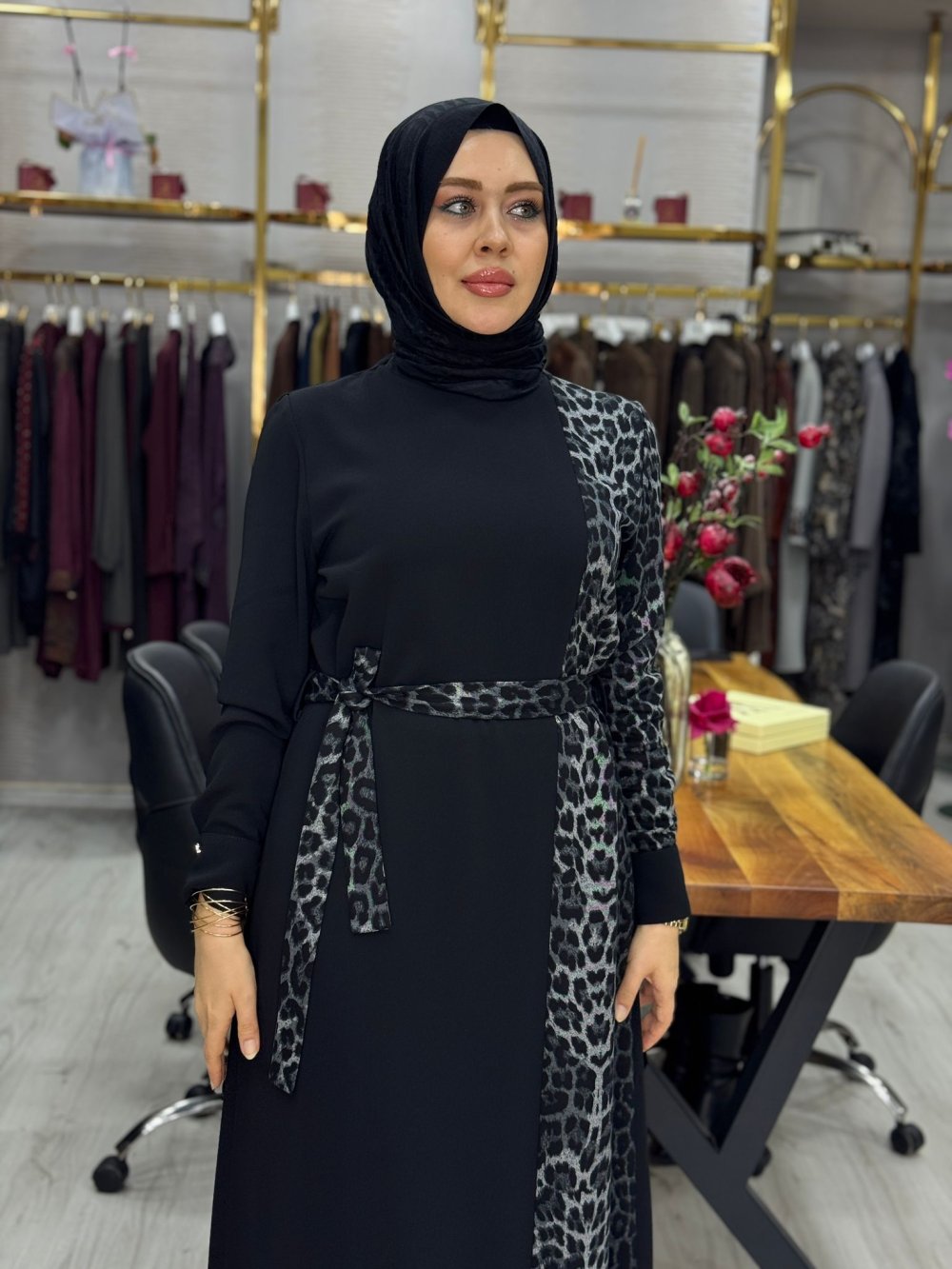 Milena Elbise Gri Leopar