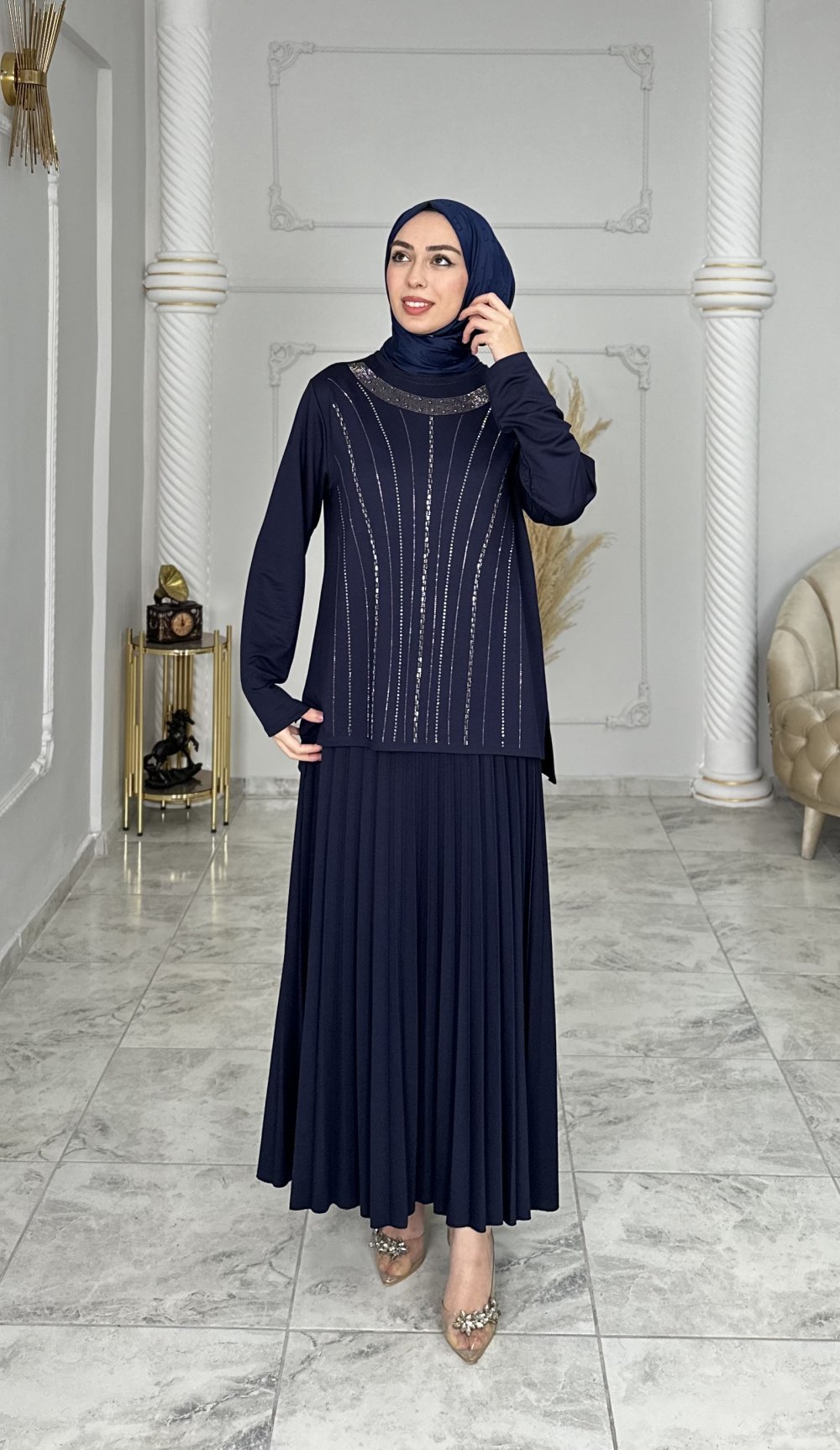 Tunik ön kısmı taş detaylı