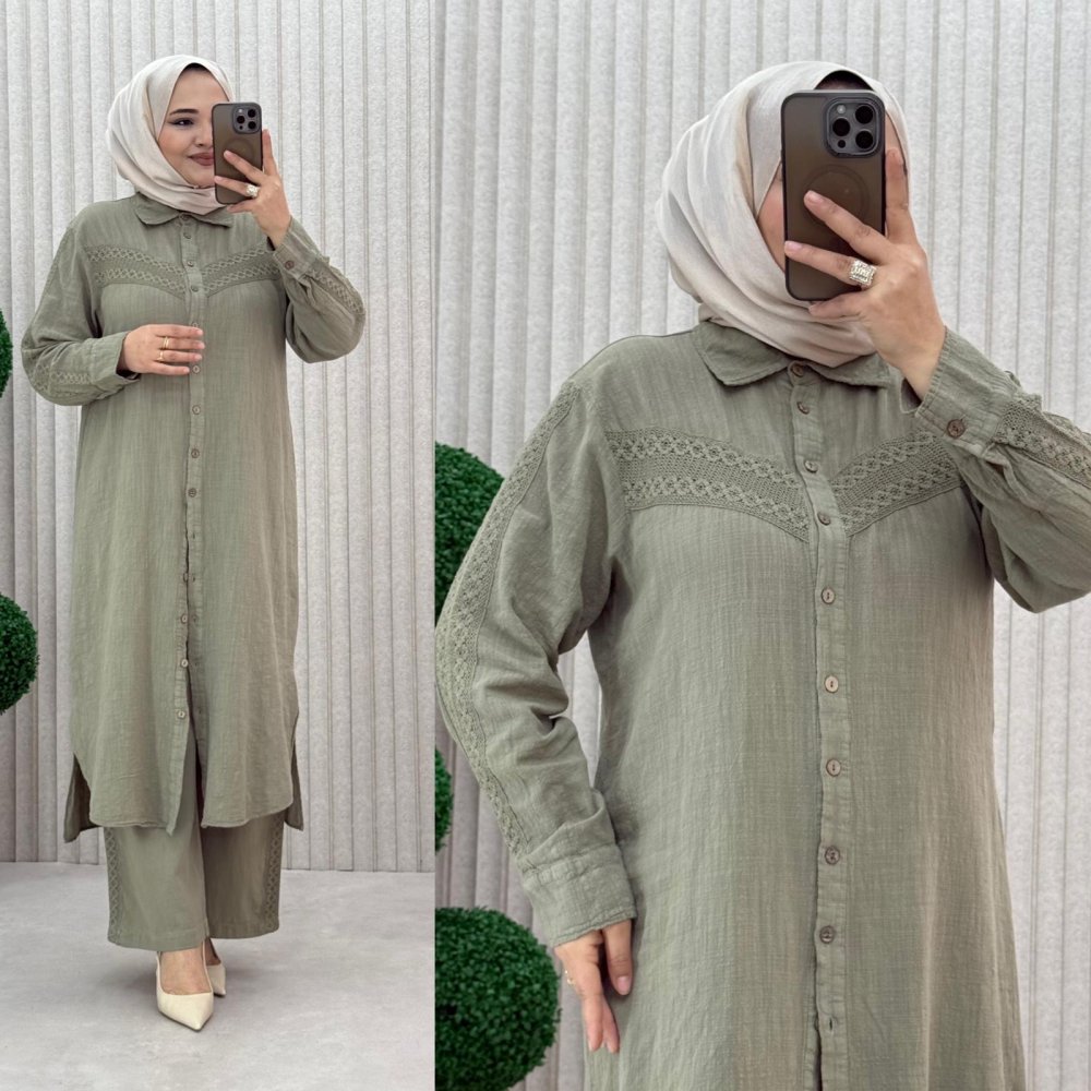 ?2 beden Göğüs 56 cm Tunik Basen 64 cm Pazu 22 cm Pantolon Bel açık 54 cm