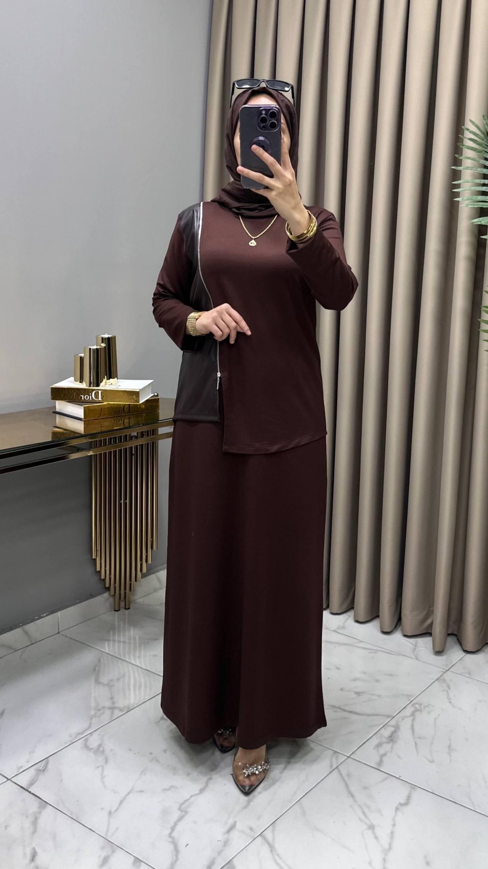 Deri Detaylı  Etekli Takım