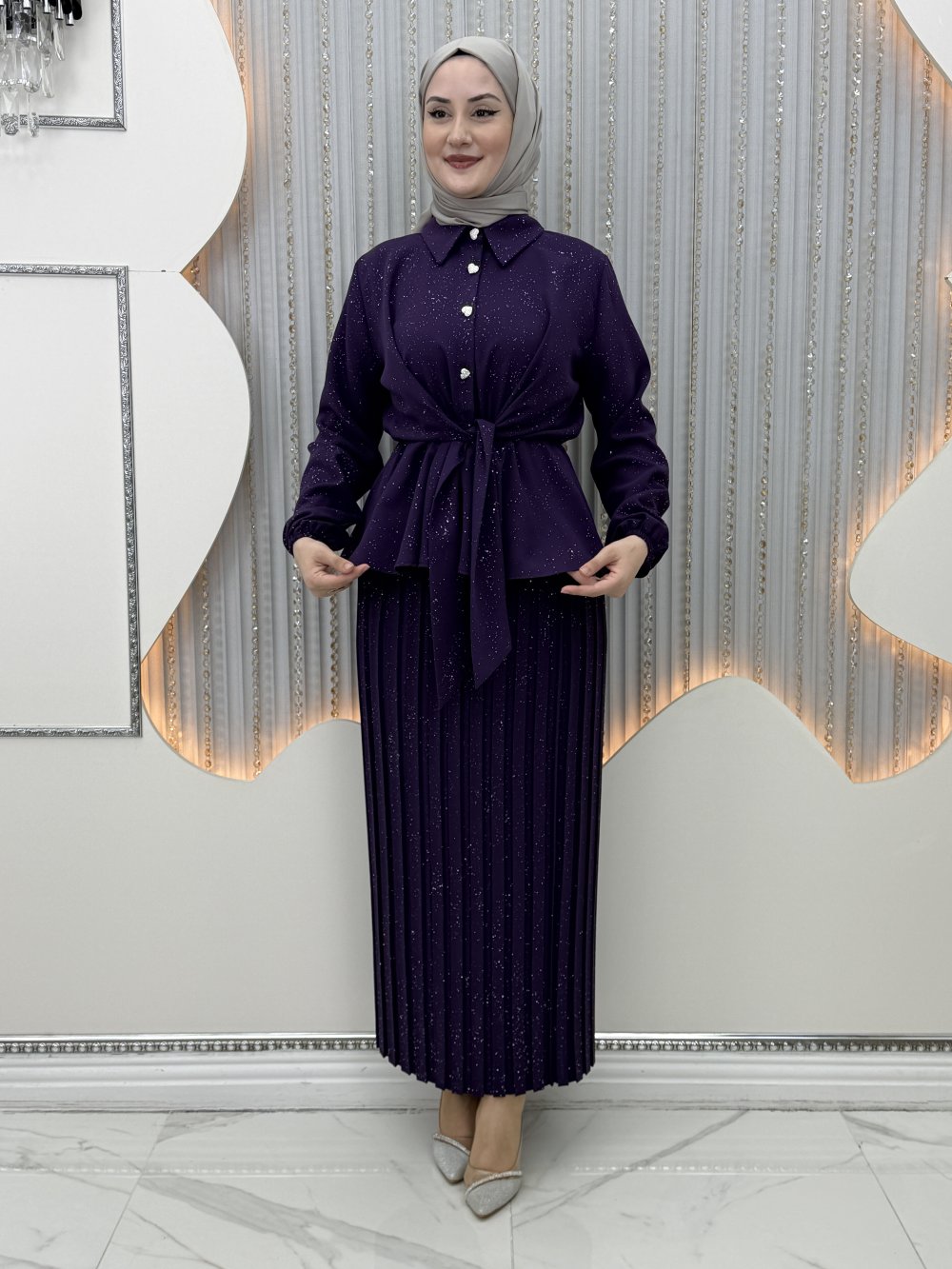Pırıltı Etekli Takım Mor