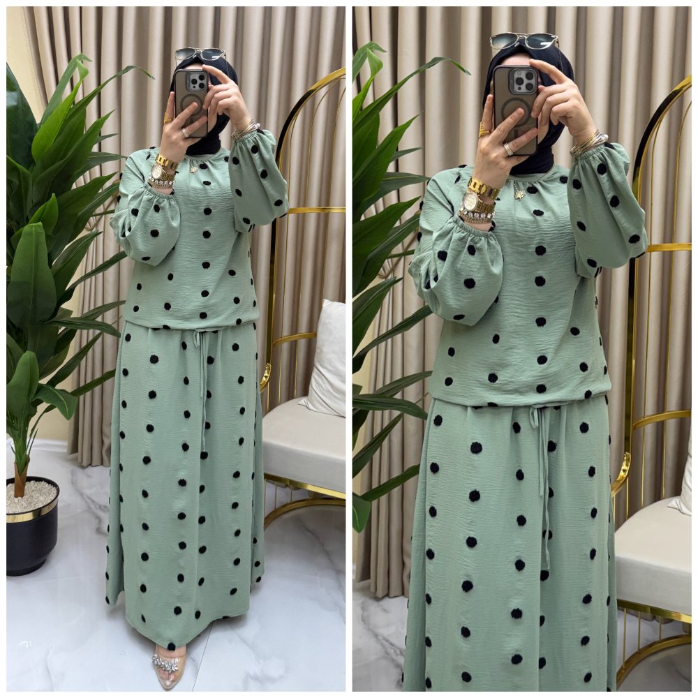 Puantiye takım Mint Yeşili