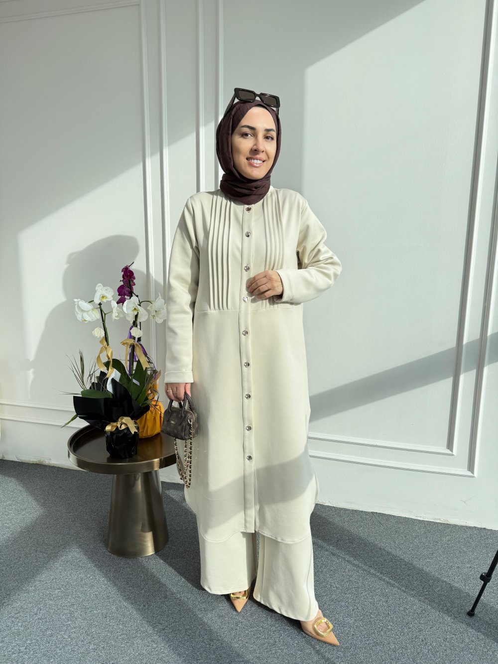 Tunik boy 115 cm’dir. Önünde gold düğme ve nervürü bulunmaktadır.