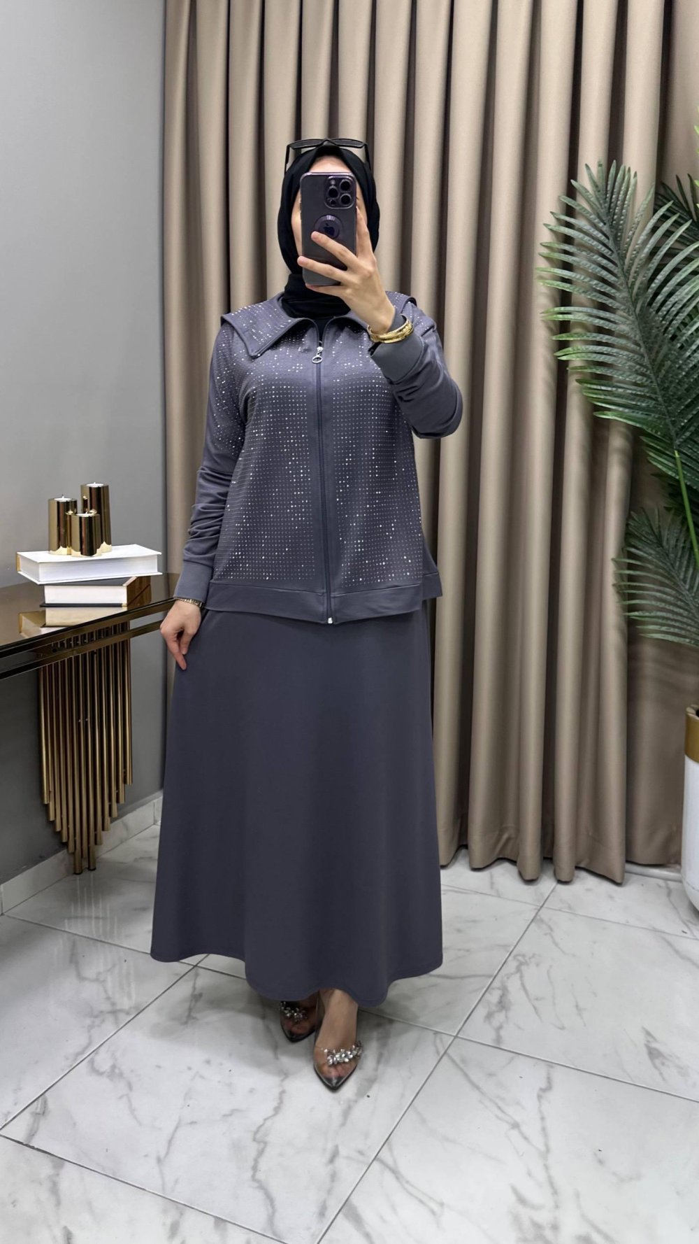 Serenay Taşlı Takım Gri