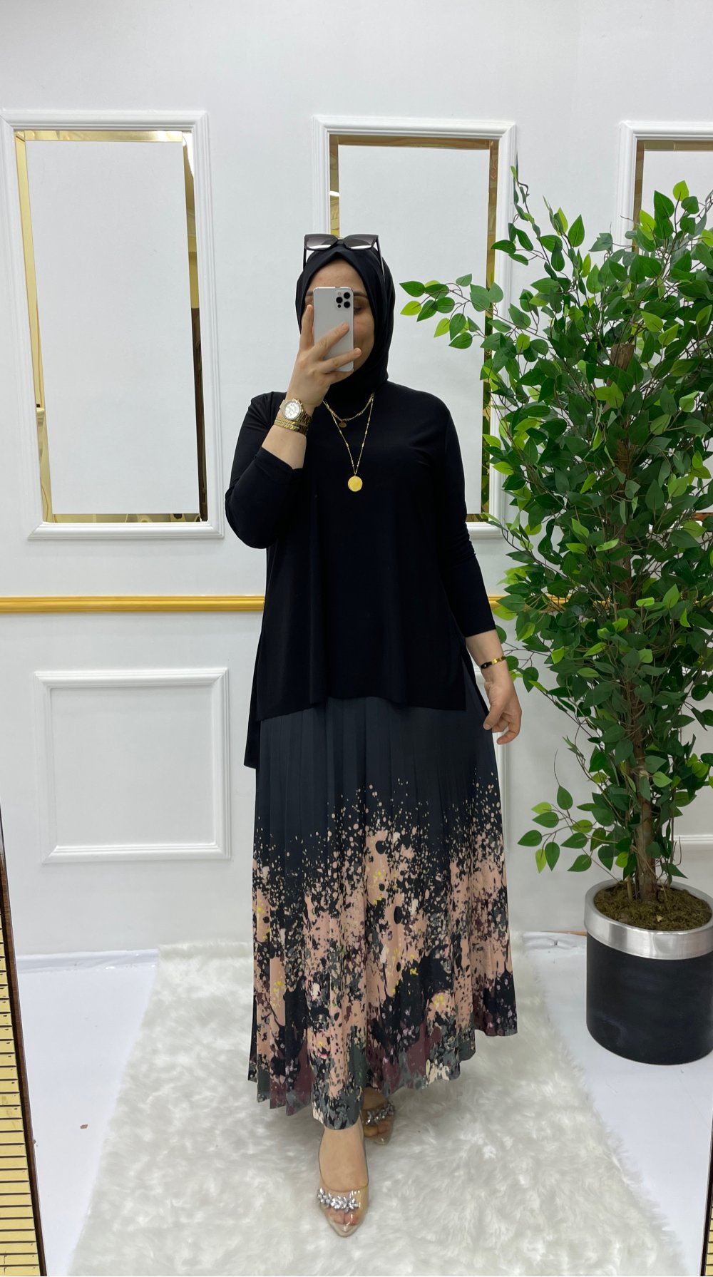 Sueda etekli takım Siyah