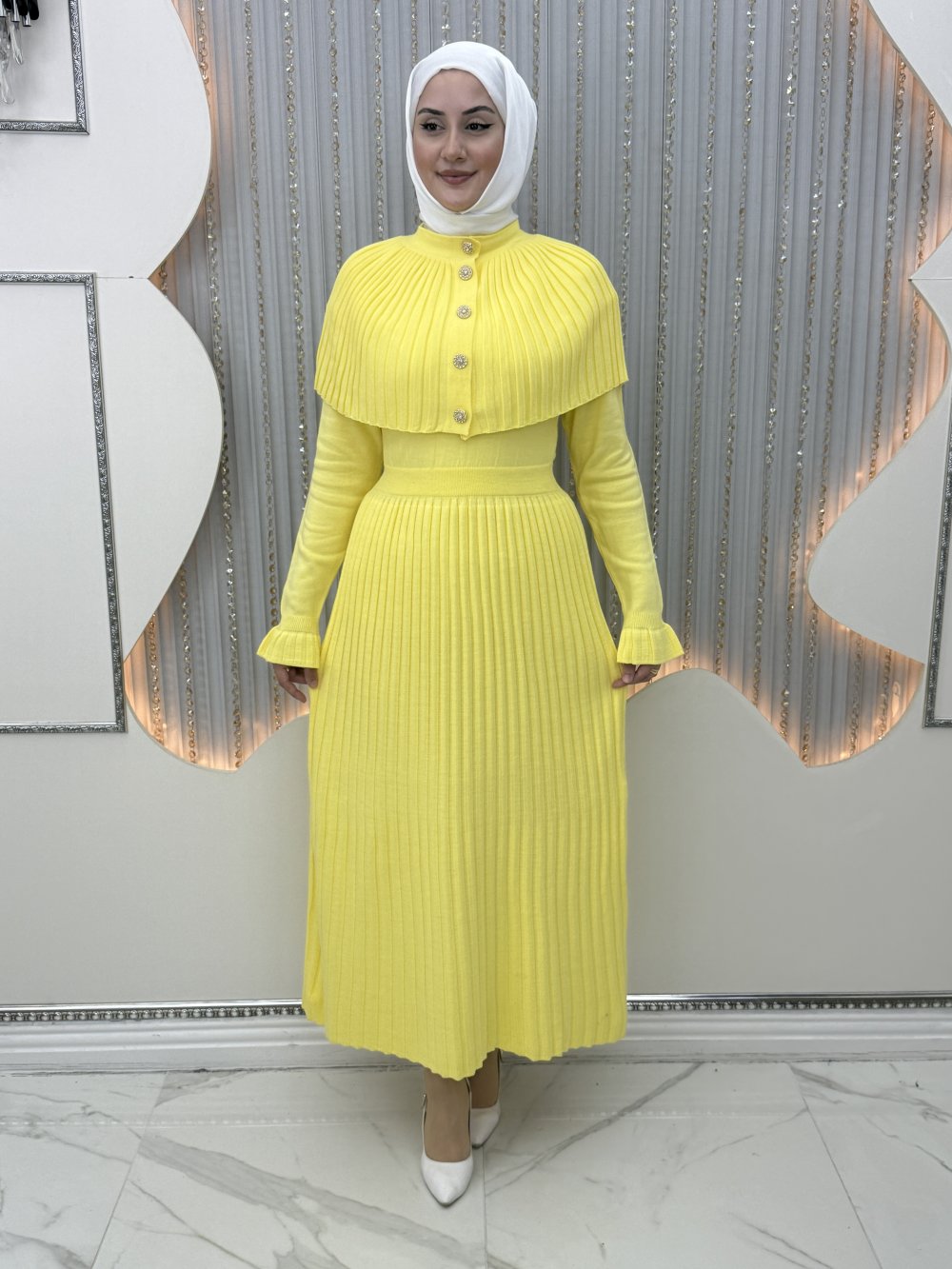 Sümbül Triko Elbise Sarı
