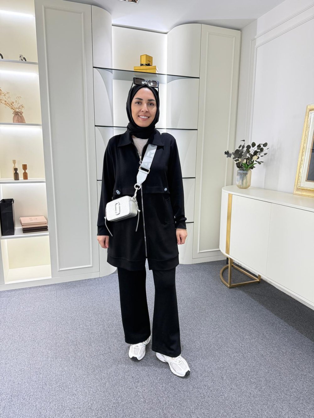 Tunik boy 85 cm’dir. Önünde metal dişli fermuarı ve yanlarda cepleri mevcuttur.