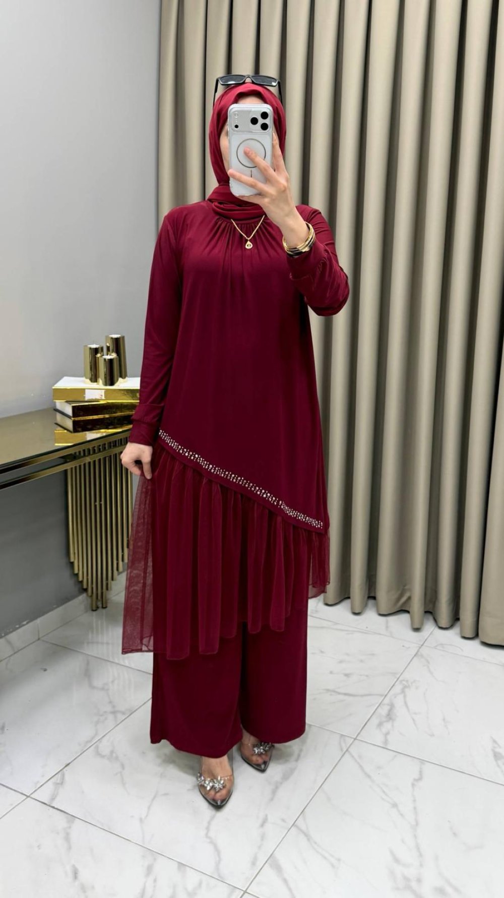 Tüllü Takım Bordo